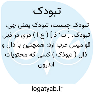 تبودک. [ ت َ دَ ] ( ع اِ ) دزی در ذیل قوامیس عرب آرد: همچنین با دال و ذال ( تبوذک ) کسی که محتویات اندرون مرغان فروشد. و محیط المحیط گوید که این پارسی است. ( دزی ج 1 ص 141 ). رجوع به تبوذک در شود.