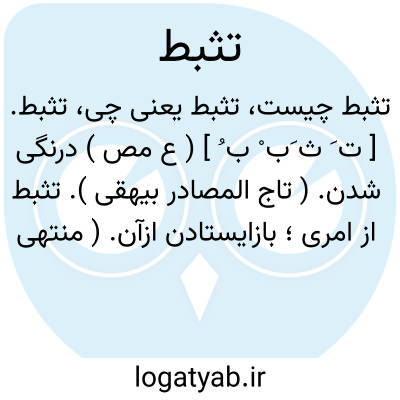 (تَ ثَ بُّ ) [ ع. ] (مص م. ) ۱ - وقوف داشتن بر کاری. ۲ - باز ایستادن از کاری، توقف و فروماندن.