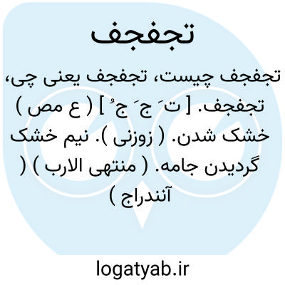 تجفجف. [ ت َ ج َ ج ُ ] ( ع مص ) خشک شدن. ( زوزنی ). نیم خشک گردیدن جامه. ( منتهی الارب ) ( آنندراج ) ( ناظم الاطباء ): تجفجف الثوب ابتل ثم جف و فیه ندی فان یبس کل الیبس قیل قف. ( اقرب الموارد ). تر شد جامه پس خشکیدو در او نمی هست. ( شرح قاموس ). || پر بادگردیدن پرنده. ( منتهی الارب ). انتفاش. ( اقرب الموارد ). || فروگرفتن بیضه ها را زیر پرهای خود. ( منتهی الارب ) ( ناظم الاطباء ). حرکت کردن پرنده بالای تخم و پوشیدن آن را با دو بال خود. ( اقرب الموارد ).