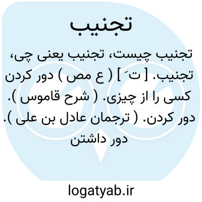 تجنیب. [ ت َ ] ( ع مص ) دور کردن کسی را از چیزی. ( شرح قاموس ). دور کردن. ( ترجمان عادل بن علی ). دور داشتن کسی را از چیزی. || دور داشتن گوسپندان و شتران را از فحل. ( منتهی الارب ) ( آنندراج ) ( ناظم الاطباء ) ( از قطر المحیط ) ( از اقرب الموارد ). || نفرستادن نر در شتر و گوسفندان. ( شرح قاموس ). || دور شدن از چیزی. || تجنیب قوم؛ بریده و منقطع شدن شیرهای ایشان. ( شرح قاموس ) ( از اقرب الموارد ) ( از قطر المحیط ) ( منتهی الارب ) ( آنندراج ) ( ناظم الاطباء ): جنب القوم؛ اذا انقطعت البانهم. ( منتهی الارب ) ( ناظم الاطباء ). || ( اِمص ) گوژی ساقهای اسب. ( منتهی الارب ) ( آنندراج ) ( ناظم الاطباء ). کجی و پیچیدگی در پای اسب و این مستحب و دوست داشته شده است. ( شرح قاموس ).