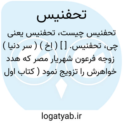 تحفنیس. [ ] ( اِخ ) ( سر دنیا ) زوجه فرعون شهریار مصر که هدد خواهرش را تزویج نمود ( کتاب اول پادشاهان 11: 18 - 20 ) و شوهرش از نسل طبقه 22 ملوک مصر بود. || شهری که در مصر تحتانی بر یکی از جداول رود نیل واقع بوده و تحفنیس ( کتاب ارمیا 2:16 ) یا تحفنحیس خوانده شده است ( کتاب ارمیا 43:7 و 8 و 9 و 44: 1 و 46: 14، کتاب حزقیال 30: 4 ) و بعد از آنکه جدلیا کشته شد ارمیا را بدین شهر آوردند و فرعون نیز قصری از خشت در آنجا بساخت. اما بنی نوف و تحفنیس که در کتاب ارمیا 2:16 مذکور است قصد از عموم اهالی مصر میباشد و یونانیان آنرا دفنه گویند و گمان میرود که موقعش همان تل دفنه باشد که در نزدیکی زان است. ( قاموس کتاب مقدس ).
