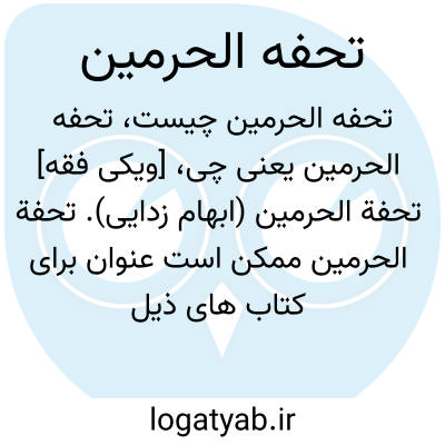 [ویکی فقه] تحفة الحرمین (ابهام زدایی). تحفة الحرمین ممکن است عنوان برای کتاب های ذیل باشد: • تحفة الحرمین و سعادة الدارین، سفرنامه حج، نوشته محمد معصوم نایب الصدر شیرازی• تحفة الحرمین (قادری)، سفرنامه منظوم فارسی در باره مکه و مدینه، نوشته محمد رحیم الدین قادری• تحفة الحرمین (نابی)، سفرنامه حج ترکی، نوشته یوسف نابی شاعر ترک زبان سده یازدهم ق