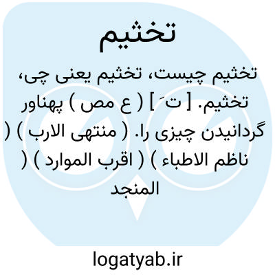 تخثیم. [ ت َ ] ( ع مص ) پهناور گردانیدن چیزی را. ( منتهی الارب ) ( ناظم الاطباء ) ( اقرب الموارد ) ( المنجد ) ( آنندراج ).