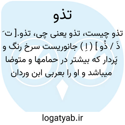 تذو.[ ت َ ذَ / ذُو ] ( اِ ) جانوریست سرخ رنگ و پَردار که بیشتر در حمامها و متوضا میباشد و او را بعربی ابن وردان گویند. ( برهان ) ( آنندراج ). ابن وردان، که جانوریست سرخ رنگ و پردار و بیشتر در گرمابه ها میباشد. ( ناظم الاطباء ). سوسک سرخ که بیشتر در حمامها و در بالوعه ها باشد. سنگم. ( مهذب الاسماء ). سوسکه. ( خلاص نطنزی ) ( حاشیه برهان چ معین ). رجوع به تدو و ابن وردان شود.