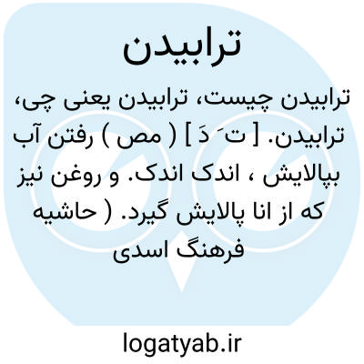 از نفس او نیاید الا لَطَف کنی.منوچهری.اندر سفال نوکردن [آب را] تا از او بترابد، مضرتهاء آب ببرد. ( ذخیره خوارزمشاهی ). رگها بدان سبب سست و... گردد و خون از رگها ترابیدن گیرد. ( ذخیره خوارزمشاهی ). و آنچه از سعفه ترابد، ریمی غلیظ و لزج باشد که قوام آن همچون انگبین بوده باشد. ( ذخیره خوارزمشاهی ). حوضی که پیوسته آب در وی می آید و آنرا بر اندازه مدخل، مخرجی نباشد لاجرم از جوانب راه جوید و بترابد. ( کلیله و دمنه ).