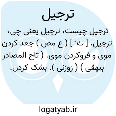 ترجیل. [ ت َ ] ( ع مص ) جعد کردن موی و فروکردن موی. ( تاج المصادر بیهقی ) ( زوزنی ). بشک کردن. تجعید. ( مجمل اللغة ). فروهشته گردانیدن موی را یا میان فروهشته و مرغول گردانیدن آنرا. ( منتهی الارب ) ( آنندراج ) ( ناظم الاطباء ). تسریح کردن موی: رَجَّل َ جعدها ماشطة الصبا. ( از اقرب الموارد ). || قوی گردانیدن. ( منتهی الارب ) ( آنندراج ) ( ناظم الاطباء ) ( از اقرب الموارد ). || ( اِ ) سپیدی که در یک پای ستور باشد. ( منتهی الارب ) ( آنندراج ) ( ناظم الاطباء ).