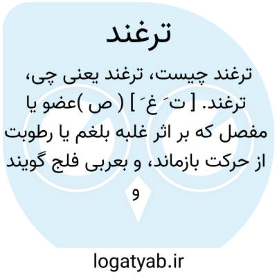ترغند. [ ت َ غ َ ] ( ص )عضو یا مفصل که بر اثر غلبه بلغم یا رطوبت از حرکت بازماند، و بعربی فلج گویند و نتیجه یک علت مزمن است. ( از لسان العجم شعوری ورق 274 ب ). فالج و مفصل عاری از حرکت. ( ناظم الاطباء ). و رجوع به ترغده شود.
