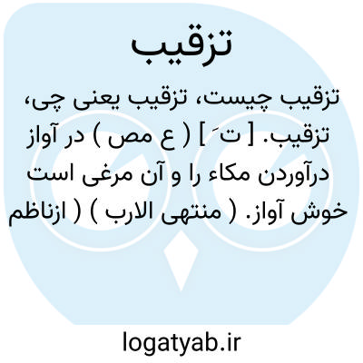 تزقیب. [ ت َ ] ( ع مص ) در آواز درآوردن مکاء را و آن مرغی است خوش آواز. ( منتهی الارب ) ( ازناظم الاطباء ). در آواز درآوردن مکاء و آن پرنده ای است. ( از متن اللغة ) ( از اقرب الموارد ) ( از المنجد ).