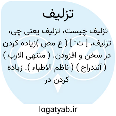 تزلیف. [ ت َ ] ( ع مص )زیاده کردن در سخن و افزودن. ( منتهی الارب ) ( آنندراج ) ( ناظم الاطباء ). زیاده کردن در سخن. ( از اقرب الموارد ) ( از متن اللغة ). تزریف. ( از متن اللغة ). || فراپیش شدن. ( مجمل اللغة ). تقدیم چیزی. ( از المنجد ). و رجوع به تزریف و تقدیم در همین لغت نامه شود.