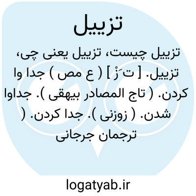 تزییل. [ ت َزْ ] ( ع مص ) جدا وا کردن. ( تاج المصادر بیهقی ). جداوا شدن. ( زوزنی ). جدا کردن. ( ترجمان جرجانی ترتیب عادل بن علی ). جدا کردن و پراکنده نمودن. ( منتهی الارب )( آنندراج ) ( ناظم الاطباء ). تفریق. ( متن اللغة ) ( اقرب الموارد ) ( المنجد ). جدا کردن. ( از متن اللغة ): فزیلنا بینهم و قال شرکاؤهم... ( قرآن 28/10 ).