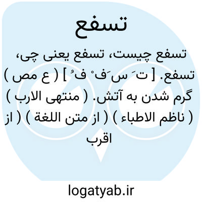 تسفع. [ ت َ س َف ْ ف ُ ] ( ع مص ) گرم شدن به آتش. ( منتهی الارب ) ( ناظم الاطباء ) ( از متن اللغة ) ( از اقرب الموارد ) ( از المنجد ): اتیتنی فی غداة قِرَّة و انا اتسفع بالنار. ( اقرب الموارد ).