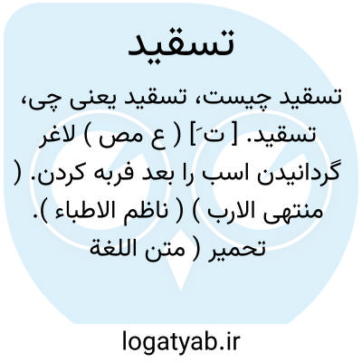 تسقید. [ ت َ] ( ع مص ) لاغر گردانیدن اسب را بعد فربه کردن. ( منتهی الارب ) ( ناظم الاطباء ). تحمیر ( متن اللغة ). تضمیر. ( اقرب الموارد ) ( المنجد ).