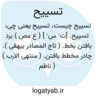 تسییح. [ت َ س ْ ] ( ع مص ) برد بافتن بخط. ( تاج المصادر بیهقی ). چادر مخطط بافتن. ( منتهی الارب ) ( ناظم الاطباء ). مخطط بافتن جامه با خطوط مختلف که یکسان نباشد. ( از متن اللغة ). || روان ساختن. ( از اقرب الموارد ). || فزونی یافتن کلام کسی. ( از متن اللغة ). || آراستن کلام کسی. ( از اقرب الموارد ) ( از المنجد ). || برآوردن اسب نره را بدون استواری انعاظ. ( از متن اللغة ). و رجوع به تسییی شود.