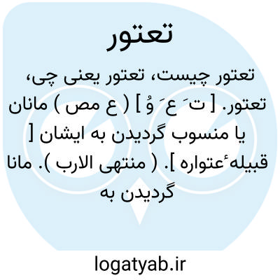 تعتور. [ ت َ ع َ وُ ] ( ع مص ) مانان یا منسوب گردیدن به ایشان [ قبیله ٔعتواره ]. ( منتهی الارب ). مانا گردیدن به قبیله عتواره یا منسوب شدن به آنها. ( ناظم الاطباء ) ( از تاج العروس ) ( از اقرب الموارد ). و رجوع به عُتواره شود.
