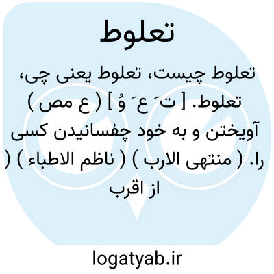 تعلوط. [ ت َ ع َ وُ ] ( ع مص ) آویختن و به خود چفسانیدن کسی را. ( منتهی الارب ) ( ناظم الاطباء ) ( از اقرب الموارد ).
