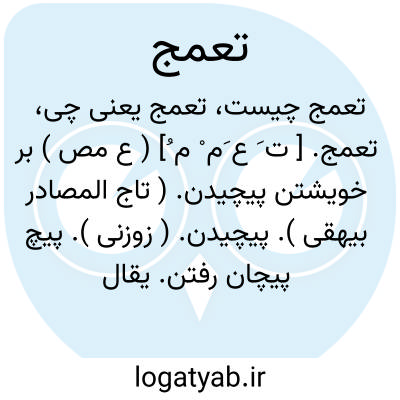 تعمج. [ ت َ ع َم ْ م ُ] ( ع مص ) بر خویشتن پیچیدن. ( تاج المصادر بیهقی ). پیچیدن. ( زوزنی ). پیچ پیچان رفتن. یقال: تعمجت الحیة؛ ای تلوت فی مرها؛ پیچید آن مار. ( از منتهی الارب ) ( ازناظم الاطباء ). پیچ پیچان رفتن مار و سیل. ( از اقرب الموارد ): تعمجت فیه اعناق السیوف. ( اقرب الموارد ).