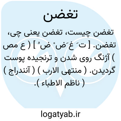 تغضن. [ ت َ غ َض ْ ض ُ ] ( ع مص ) آژنگ روی شدن و ترنجیده پوست گردیدن. ( منتهی الارب ) ( آنندراج ) ( ناظم الاطباء ). تشنج و تثنی: تغضنت الدرع علی لابسها. ( اقرب الموارد ).