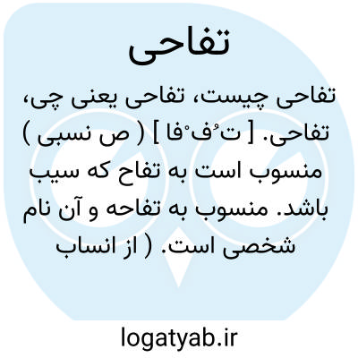 تفاحی. [ ت ُف ْفا ] ( ص نسبی ) منسوب است به تفاح که سیب باشد. منسوب به تفاحه و آن نام شخصی است. ( از انساب سمعانی ).