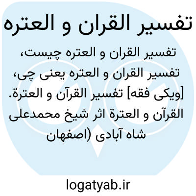 [ویکی فقه] تفسیر القرآن و العتره. القرآن و العترة اثر شیخ محمدعلی شاه آبادی (اصفهان ۱۲۹۲ - تهران ۱۳۶۹ ق) فرزند شیخ محمدجواد اصفهانی معروف به شاه آبادی، از ائمه فتوی و تقلید و مدرسین فلسفه در تهران می باشد.