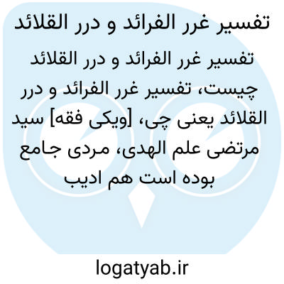 غررالفرائد و دررالقلائد (تفسیر شریف المرتضی) اثـر عـلـم الـهـدی سید مرتضی یا شریف مرتضی، ابوالقاسم علی (۳۵۵ - ۴۳۶ ق) فرزند ابواحمد الحسین موسوی از نواده های ابراهیم مجاب فرزند امام موسی کاظم (علیه السّلام) از اعاظم علمای شیعه و شیخ طائفه امامیه و نقیب علویان. ابن عماد حنبلی از وی به عنوان نقیب طالبان و رئیس شیعه در عراق یاد می کند.