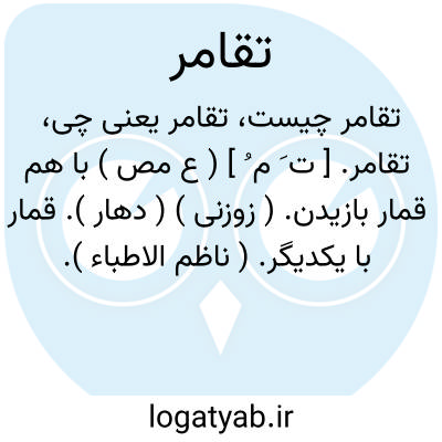 تقامر. [ ت َ م ُ ] ( ع مص ) با هم قمار بازیدن. ( زوزنی ) ( دهار ). قمار با یکدیگر. ( ناظم الاطباء ). همدیگر به گرو چیزی باختن و نبرد کردن باهم به گرو. ( منتهی الارب ) ( ناظم الاطباء ) ( از اقرب الموارد ).