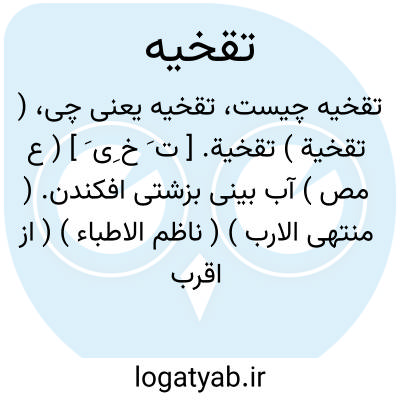 ( تقخیة ) تقخیة. [ ت َ خ ِی َ ] ( ع مص ) آب بینی بزشتی افکندن. ( منتهی الارب ) ( ناظم الاطباء ) ( از اقرب الموارد ). رجوع به تنخع شود.