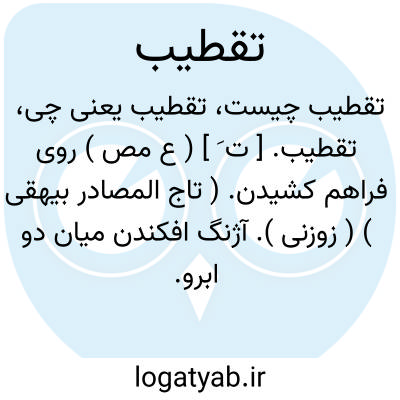تقطیب. [ ت َ ] ( ع مص ) روی فراهم کشیدن. ( تاج المصادر بیهقی ) ( زوزنی ). آژنگ افکندن میان دو ابرو. || ترش نمودن روی را. ( منتهی الارب ) ( آنندراج )( ناظم الاطباء ). || آمیختن می را. ( منتهی الارب ) ( آنندراج ) ( ناظم الاطباء ) ( از اقرب الموارد ).