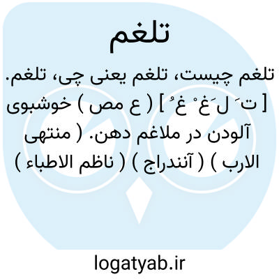 تلغم. [ ت َ ل َغ ْ غ ُ ] ( ع مص ) خوشبوی آلودن در ملاغم دهن. ( منتهی الارب ) ( آنندراج ) ( ناظم الاطباء ) ( از اقرب الموارد ). || ملاغم جنبانیدن وقت سخن گفتن. ( منتهی الارب ) ( آنندراج ) ( ناظم الاطباء ) ( از اقرب الموارد ). و مَلاغِم گرداگرد درون دهان. ( آنندراج ). قال ابن اعرابی قلت لاعرابی متی المسیر فقال تلغموا بیوم السبت؛ یعنی ذکروه و اشتقاقه من حرکوا ملاغمهم به. ( اقرب الموارد ).