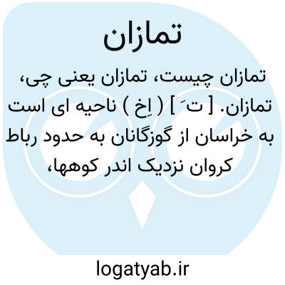 تمازان. [ ت َ ] ( اِخ ) ناحیه ای است به خراسان از گوزگانان به حدود رباط کروان نزدیک اندر کوهها، مهتر ایشان را تمازان قزنده خوانند. ( حدود العالم چ دکتر ستوده ص 96 ). رجوع به ترجمه مینورسکی ص 106 شود.