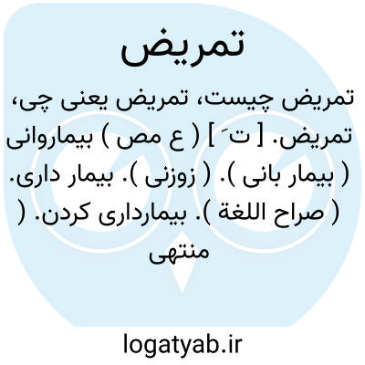 تمریض. [ ت َ ] ( ع مص ) بیماروانی ( بیمار بانی ). ( زوزنی ). بیمار داری. ( صراح اللغة ). بیمارداری کردن. ( منتهی الارب ) ( ناظم الاطباء ). نیک خدمت کردن بیمار را. ( آنندراج ). نیک بیمارداری کردن و متکفل درمان او شدن. ( از اقرب الموارد ). || سست ساختن. ( منتهی الارب ). توهین کردن. ( ناظم الاطباء ). سست گردانیدن و استوار نساختن چیزی را. ( از اقرب الموارد ). || قصر کردن در کاری. ( منتهی الارب ). کوتاهی نمودن در کاری. ( ناظم الاطباء ) ( از اقرب الموارد ). سستی کردن در کاری. ( آنندراج ). || بر باد کردن گندم را. ( منتهی الارب ) ( آنندراج ).