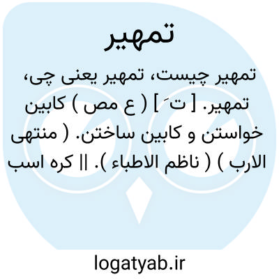تمهیر. [ ت َ ] ( ع مص ) کابین خواستن و کابین ساختن. ( منتهی الارب ) ( ناظم الاطباء ). || کره اسب خواستن. || کره اسب گرفتن. ( از اقرب الموارد ).