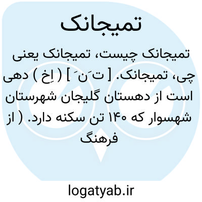 تمیجانک. [ ت َن َ ] ( اِخ ) دهی است از دهستان گلیجان شهرستان شهسوار که 140 تن سکنه دارد. ( از فرهنگ جغرافیایی ایران ج 3 ). در سفرنامه مازندران رابینو بخش انگلیسی ص 107 وترجمه فارسی آن ص 145 یکی از دهات جزو تنکابن را تمیجانه ذکر می کند و بعید نیست که این دو یکی باشند.