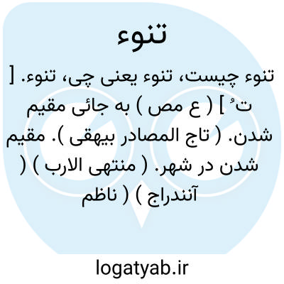 تنوء. [ ت ُ ] ( ع مص ) به جائی مقیم شدن. ( تاج المصادر بیهقی ). مقیم شدن در شهر. ( منتهی الارب ) ( آنندراج ) ( ناظم الاطباء ) ( از اقرب الموارد ). و فی الحدیث: من تناء ارض العجم فعمل بنیروزهم و مهرجانهم حشر معهم. ( منتهی الارب ) ( ناظم الاطباء ).