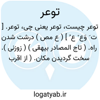 توعر. [ ت َ وَع ْ ع ُ ] ( ع مص ) درشت شدن راه. ( تاج المصادر بیهقی ) ( زوزنی ). سخت گردیدن مکان. ( از اقرب الموارد ).دشوار گشتن. ( منتهی الارب ) ( آنندراج ) ( ناظم الاطباء ). || سختی نمودن در چیزی. || دشوارکار گردیدن مرد. || سرگشته و متحیر گردیدن در کلام. یقال: توعر فی الکلام؛ ای تحیر. ( منتهی الارب ) ( ناظم الاطباء ) ( از آنندراج ) ( از اقرب الموارد )
