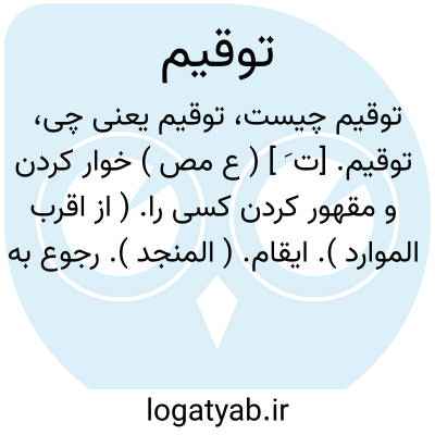 توقیم. [ت َ ] ( ع مص ) خوار کردن و مقهور کردن کسی را. ( از اقرب الموارد ). ایقام. ( المنجد ). رجوع به ایقام شود.