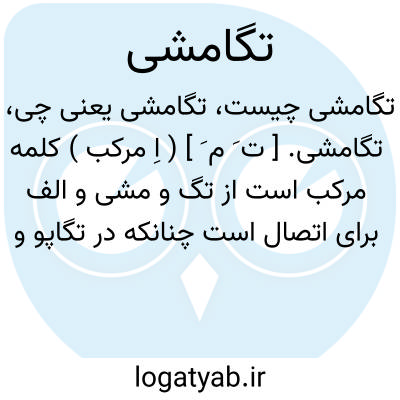 تگامشی. [ ت َ م َ ] ( اِ مرکب ) کلمه مرکب است از تگ و مشی و الف برای اتصال است چنانکه در تگاپو و دوادو. پس معنی تگامشی بمعنی تگاپو و بسیار دویدن باشد و چون لفظ تگ بمعنی عقب و پس نیز می آید در اینصورت الف برای اشباع شود و معنی آن تعاقب باشد یعنی در پی کسی دویدن. ( غیاث اللغات ) ( آنندراج ). این وجه اشتقاق براساسی نیست: صورت درست آن تکامیشی و کلمه مغولی است. بمعنی تعاقب. رجوع به «سنگلاخ » و رجوع به تکامیشی شود.