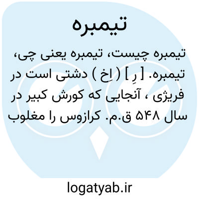 تیمبره. [ رِ ] ( اِخ ) دشتی است در فریژی، آنجایی که کورش کبیر در سال 548 ق.م. کرازوس را مغلوب ساخت. ( از لاروس ). رجوع به تیم برارا و قاموس الاعلام ترکی ذیل تیمبریا شود.