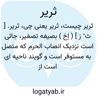 ثریر. [ ث ُ رَ ] ( اِخ ) بصیغه تصغیر، جائی است نزدیک انصاب الحرم که متصل به مستوفر است و گویند ناحیه ای است از نواحی حجاز که آنجا مال و ثروتی از ابن زبیر بوده است. ( مراصد الاطلاع ).