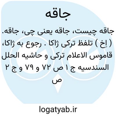 جاقه. ( اِخ ) تلفظ ترکی ژاکا. رجوع به ژاکا، قاموس الاعلام ترکی و حاشیه الحلل السندسیه ج 1 ص 72 و 79 و ج 2 ص 113 و 116 و 183 شود.