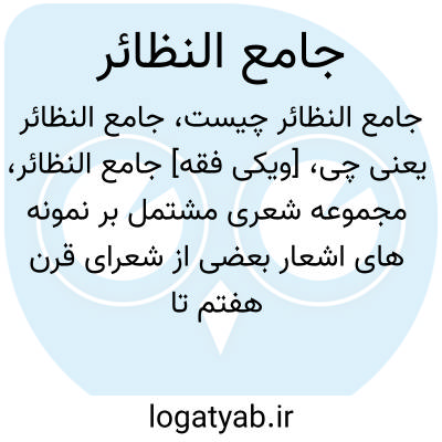 [ویکی فقه] جامع النظائر، مجموعه شعری مشتمل بر نمونه های اشعار بعضی از شعرای قرن هفتم تا دهم آناطولی و بعضی از نظیره های این اشعار که حاجی کمال اَگردیری آن را گرد آورده و در ۹۱۸ تنظیم شده است.