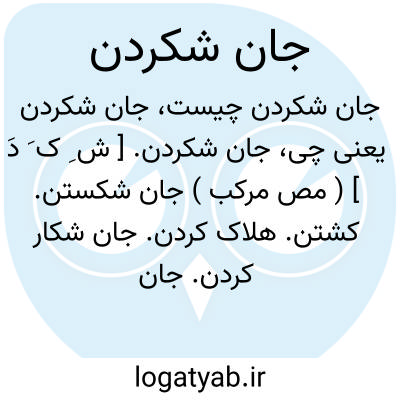 جان شکردن. [ ش ِ ک َ دَ ] ( مص مرکب ) جان شکستن. کشتن. هلاک کردن. جان شکار کردن. جان شکریدن. و رجوع به جان شکریدن و جان شکار و جان شکر شود.