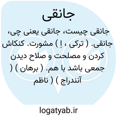 جانقی. ( ترکی، اِ ) مشورت. کنکاش کردن و مصلحت و صلاح دیدن جمعی باشد با هم. ( برهان ) ( آنندراج ) ( ناظم الاطباء ). و بحذف ثانی هم بنظر آمده است. ( برهان ) ( آنندراج ). ترکی است بمعنی مشورت، اندرز. || شغل. ( حاشیه برهان چ معین ). رجوع به فرهنگ جانسون شود.
