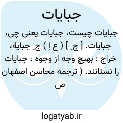 جبایات. [ ج ِ ] ( ع اِ ) ج ِ جبایة، خراج: بهیچ وجه از وجوه، جبایات را نستانند. ( ترجمه محاسن اصفهان ص 140 ). رجوع به جبایة شود.