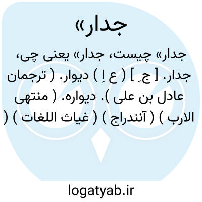 جدار. [ ج ِ ] ( ع اِ ) دیوار. ( ترجمان عادل بن علی ). دیواره. ( منتهی الارب ) ( آنندراج ) ( غیاث اللغات ) ( مهذب الاسماء ) ( ناظم الاطباء ). لاد. حائط. جَدر. ( قطر المحیط ) ( اقرب الموارد ). ج، جُدر و جُدُر. ( منتهی الارب ) ( ناظم الاطباء ) ( اقرب الموارد ): جداراً یرید اَن ینقض فاقامه. ( قرآن 18 / 77 ). و اما الجدارُ فکان لِغلامین یتیمین فی المدینة. ( قرآن 18 / 82 ).