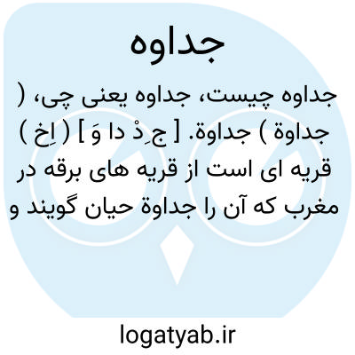 ( جداوة ) جداوة. [ ج ِدْ دا وَ ] ( اِخ ) قریه ای است از قریه های برقه در مغرب که آن را جداوة حیان گویند و فاصله ٔآن با وادی مخبل هشت فرسخ است. ( ازمعجم البلدان ).