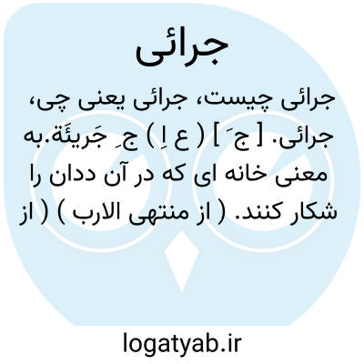 جرائی. [ ج َ ] ( ع اِ ) ج ِ جَریئَة.به معنی خانه ای که در آن ددان را شکار کنند. ( از منتهی الارب ) ( از شرح قاموس ) ( اقرب الموارد ). و ج ِ جَری به معنی فوق. ( قطر المحیط ). و این وزن نزد عرب متروک است مگر به صورت شذوذ و جمع قیاسی آن جرایا است چون خطیئة که جمع آن خطایا است. ( از اقرب الموارد ).