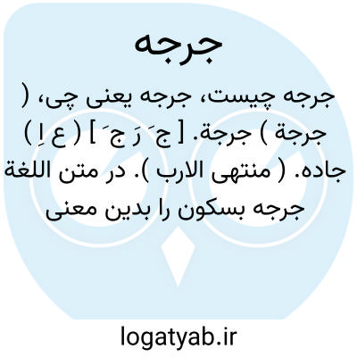 ( جرجة ) جرجة. [ ج َ رَ ج َ ] ( ع اِ ) جاده. ( منتهی الارب ). در متن اللغة جرجه بسکون را بدین معنی آمده است. رجوع به جَرجَه شود. || میانه راه. ( منتهی الارب ). بدین معنی در متن اللغة بسکون را ضبط شده است. رجوع به کلمه مزبور شود.