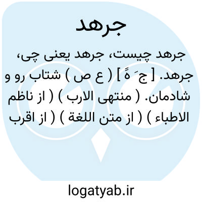 جرهد. [ ج َ هََ ] ( ع ص ) شتاب رو و شادمان. ( منتهی الارب ) ( از ناظم الاطباء ) ( از متن اللغة ) ( از اقرب الموارد ).جُرهُد. ( منتهی الارب ) ( اقرب الموارد ) ( متن اللغة ).