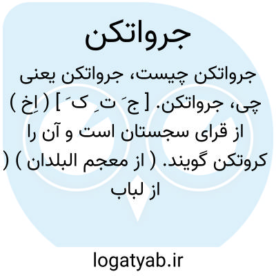 جرواتکن. [ ج َ ت ِ ک َ ] ( اِخ ) از قرای سجستان است و آن را کروتکن گویند. ( از معجم البلدان ) ( از لباب الانساب ) ( از مرآت البلدان ج 4 ص 223 ). و صاحب تاریخ سیستان در ضمن فصل دیه ها آرد: جرواتکن نه از حالق نو است و نه از کهنه. ( از تاریخ سیستان چ بهار ص 29 ) و در همین کتاب بصورت جروادکن نیز ضبط شده است.
