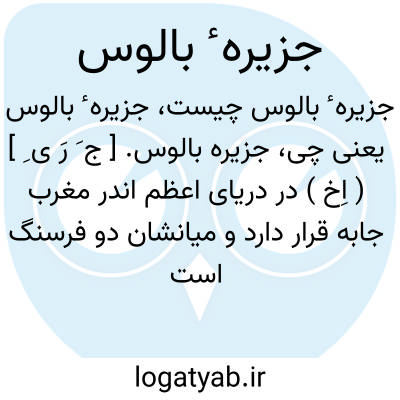 جزیره بالوس. [ ج َ رَ ی ِ ] ( اِخ ) در دریای اعظم اندر مغرب جابه قرار دارد و میانشان دو فرسنگ است و ازو کافور نیک وجوز هندی خیزد. ( از حدود العالم چ دانشگاه ص 19 ).